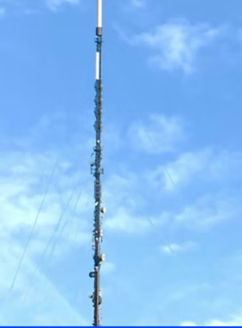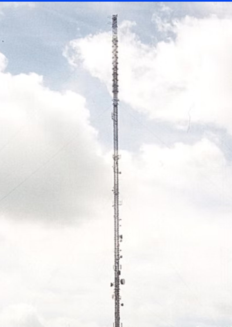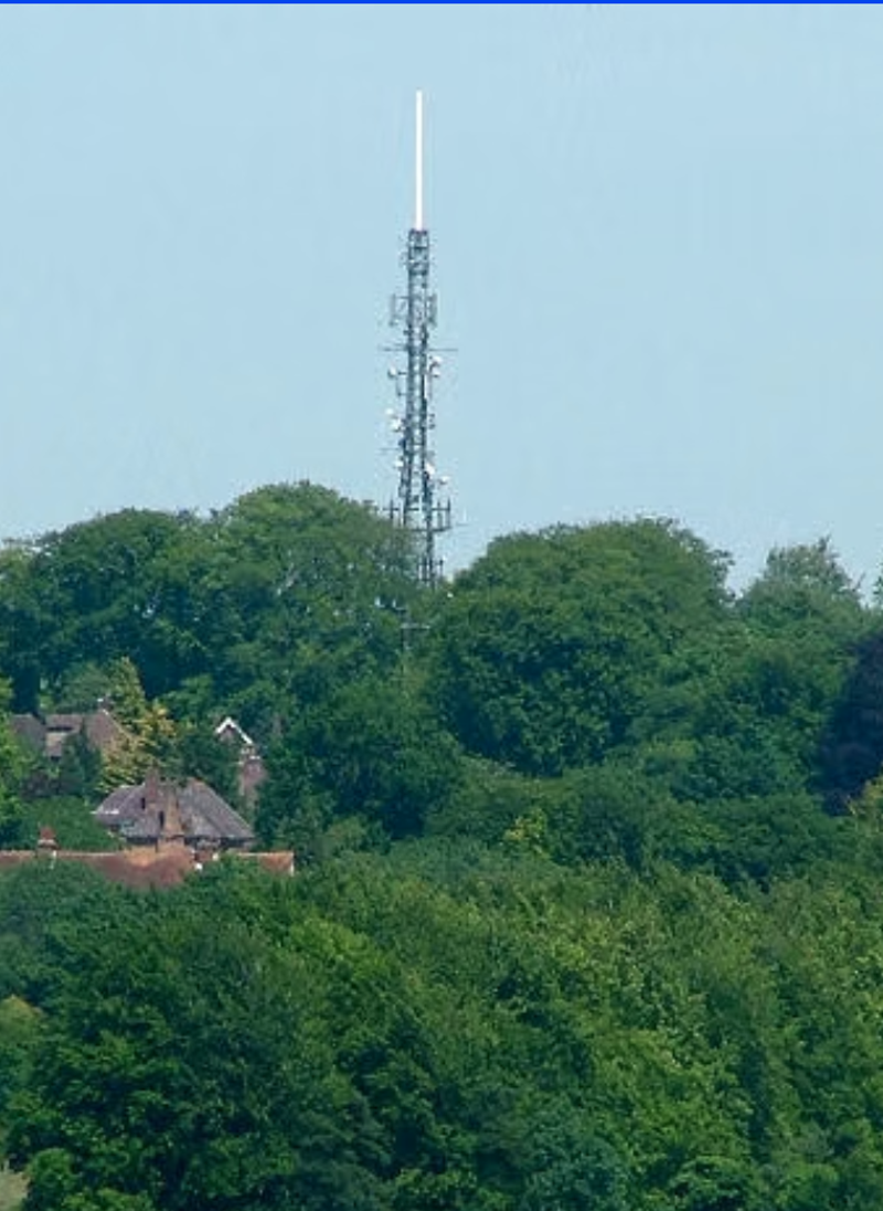 This main transmitter is perched on the hill overlooking the Kent Port and is visible from the M 20.