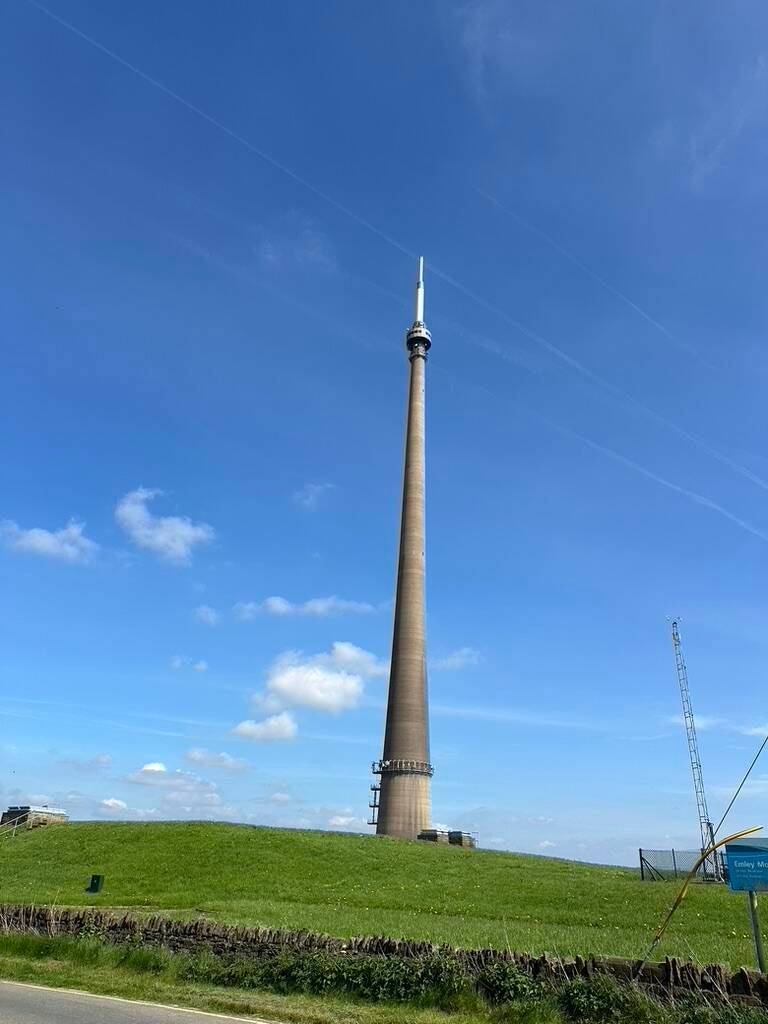 The concrete tower at Emley began transmitting in 1971 and is a Grade II listed building. The iconic tower is 1,084ft (330.4m) tall.